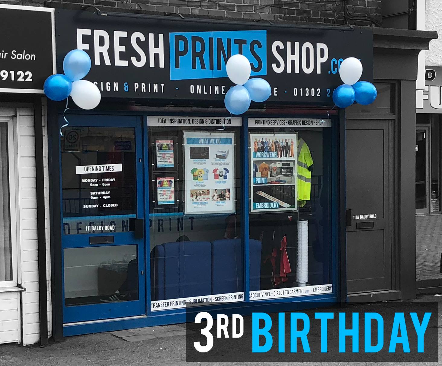 Another Birthday another year!!! Its now been 3 years since Fresh Prints Shop opened its doors. The shops success isn’t a miracle, it is with big thanks to everyone who has been involved, loyal customers, new clients, talented staff, dedicated family & friends.